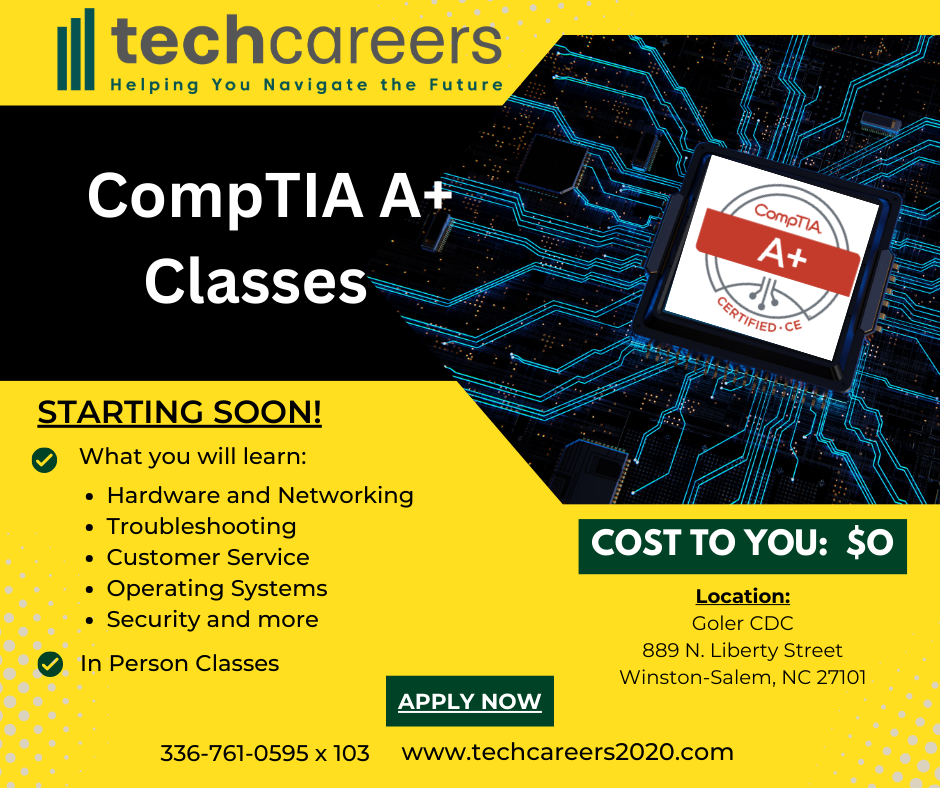 Designed by Goler Community Development Corporation, TechCareers is an initiative focused on linking unemployed and underemployed residents of Forsyth and surrounding counties with the technical education, career readiness training and community resources needed to secure a rewarding position in the Information & Technology industry.